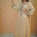 A masterpiece of traditional Moroccan elegance, this kaftan-style jalabiya showcases exquisite embroidered detailing inspired by timeless artisanal craftsmanship. Intricate floral motifs are beautifully hand-embroidered, creating a rich texture and refined depth. Designed with a flowing silhouette, it offers effortless grace and sophistication, making it an ideal choice for special occasions, celebrations, and elegant evenings.